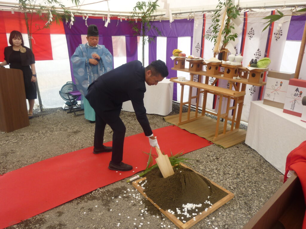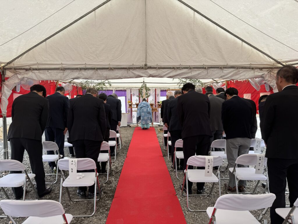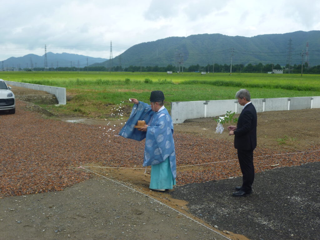2025年9月8日 こしの都ネットワーク株式会社新社屋建設工事の地鎮祭が行われました。ご来賓の方々ならびに工事関係者が参加し、神事が執り行われました。